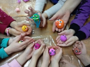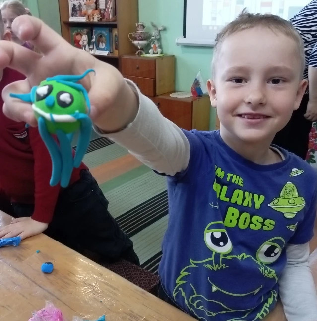 На час творчества «Волшебный колобок» к нам в гости приходили ребята из детского садика. Гостей мероприятия ждала увлекательная встреча с одним из самых известных персонажей — колобком. Девочки и мальчики отгадывали загадки о героях этой замечательной сказки, а затем слепили колобка из воздушного пластилина.